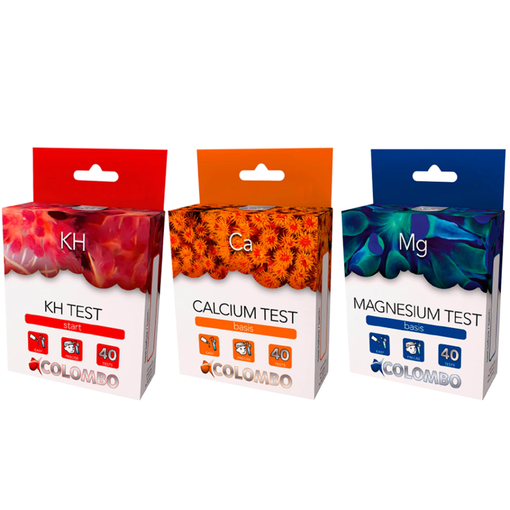 Kit Testes Colombo KH, Cálcio (CA) e Magnésio (MG) - Controle Completo dos Parâmetros Essenciais do Seu Aquário Marinho